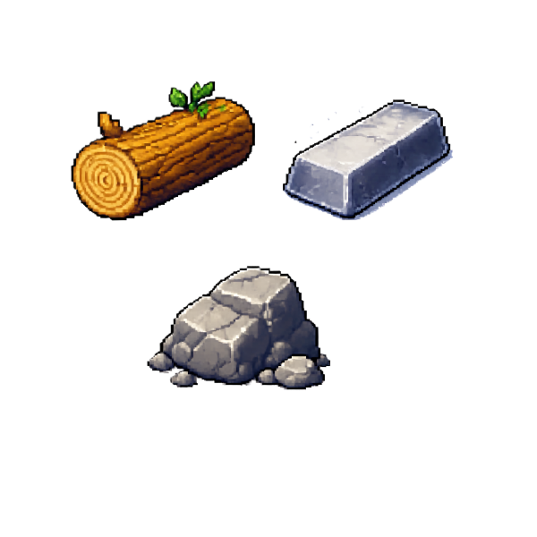 A simple asset pack with the three basic resources like wood, stone and iron (more soon)